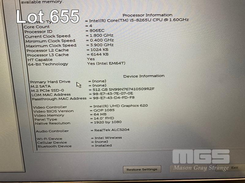 LAPTOP, DELL LATITUDE 5400, CORE i5 8265U (8TH GEN) @ 1.6GHz, 8GB DDR4 RAM, 512GB NVMe M.2 SSD, 14" WIDESCREEN (1920x1080), INTEL UHD GRAPHICS 620, Wi-Fi, BLUETOOTH, WINDOWS 11 HOME INSTALLED & POWER SUPPLY S/N:HQK7ZY2