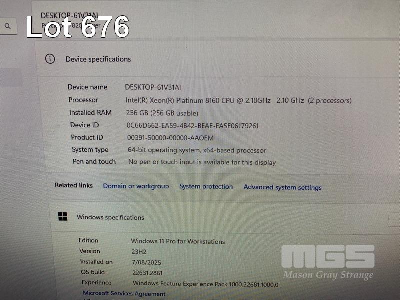 MIDI-TOWER PC, DELL PRECISION 7820 WORKSTATION, 2 x XEON PLATINUM 8160 @ 2.1GHz, 256GB DDR4 RAM (8x32), 512GB SSD, DVD-RW, 8GB NVIDIA QUADRO P4000 VIDEO (4 DP), WINDOWS 11 PRO INSTALLED (NO KEYBOARD, NO MOUSE) S/N:BY7F0T2