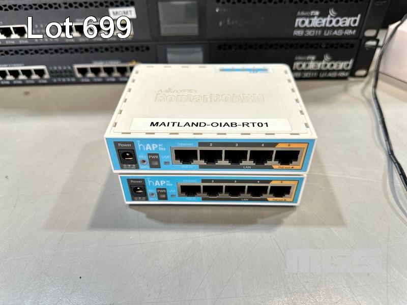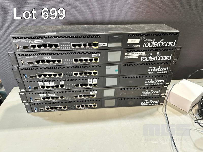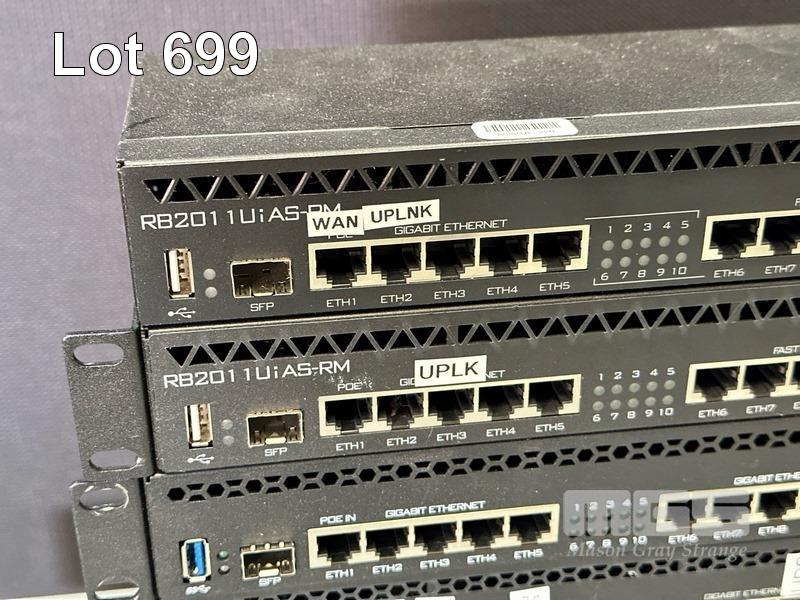 4 x MIKROTIK ROUTERBOARD RB3011UiAS-RM NETWORK DEVICES 2 x MIKROTIK ROUTERBOARD RB2011UiAS-RM NETWORK DEVICES 2 x MIKROTIK ROUTERBOARD hAP AC LITE ACCES POINTS (WITH POWER SUPPLIES)