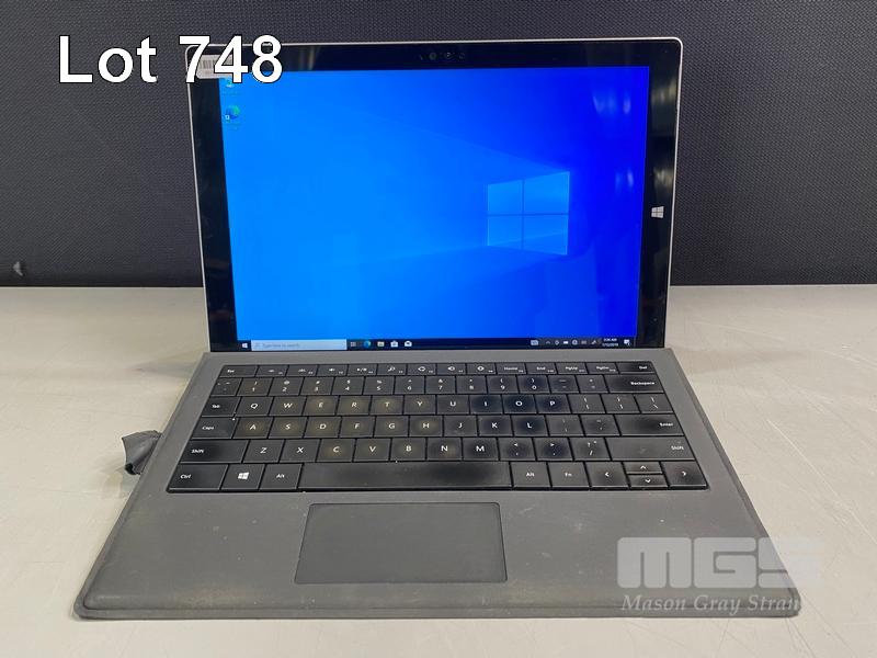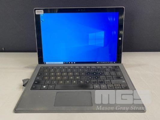 TABLET PC, MICROSOFT SURFACE PRO 3, MODEL 1631, CORE i3 4020Y (4TH GEN) @ 1.5GHz, 4GB RAM, 64GB SSD, 12" TOUCHSCREEN, Wi-Fi, BLUETOOTH, WINDOWS 10 PRO INSTALLED, KEYBOARD TYPE COVER (NO POWER SUPPLY) (NOTE: BUBBLE MARKS ON SCREEN) S/N:053788444953