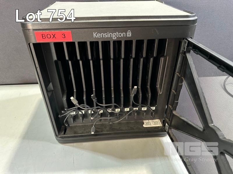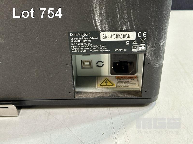 KENSINGTON CHARGE & SYNC CABINET, MODEL M01207, 10-BAY, LIGHTNING CABLES, LOCKABLE WITH KEY S/N:A1348A040084