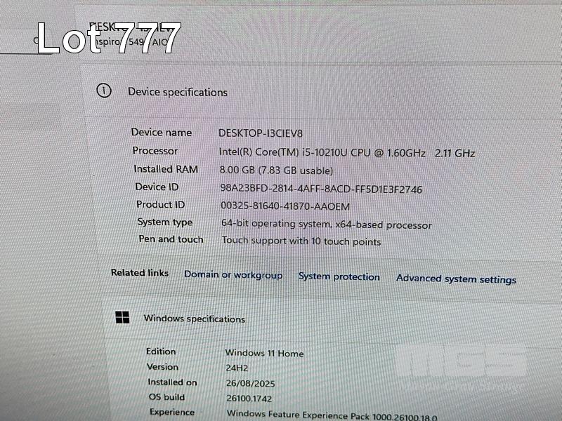 ALL-IN-ONE PC, DELL INSPIRON 5490, CORE i5 10210U (10TH GEN) @ 1.6GHz, 8GB DDR4 RAM, 256GB NVMe M.2 SSD, INBUILT 23.8" TOUCHSCREEN (1920x1080), Wi-Fi, BLUETOOTH, WINDOWS 11 HOME INSTALLED, KEYBOARD & MOUSE S/N:5891F92