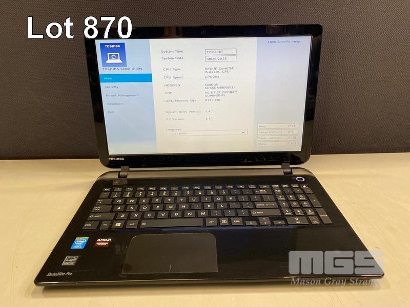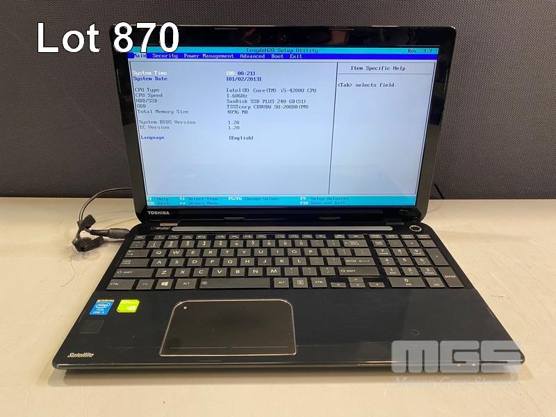 5 x LAPTOPS INC. - 4 x TOSHIBA SATELLITE L50-A, CORE i5 4200U @ 1.6GHz, 4GB RAM, 240GB SSD - 1 x TOSHIBA SATELLITE PRO L50-B, CORE i5 4210U @ 1.7GHz, 8GB RAM, 480GB SSD (WITH POWER SUPPLPIES) S/N:XD137407Q, 1E183608U, 7E037573C, 1E210740U, 9D040378Q