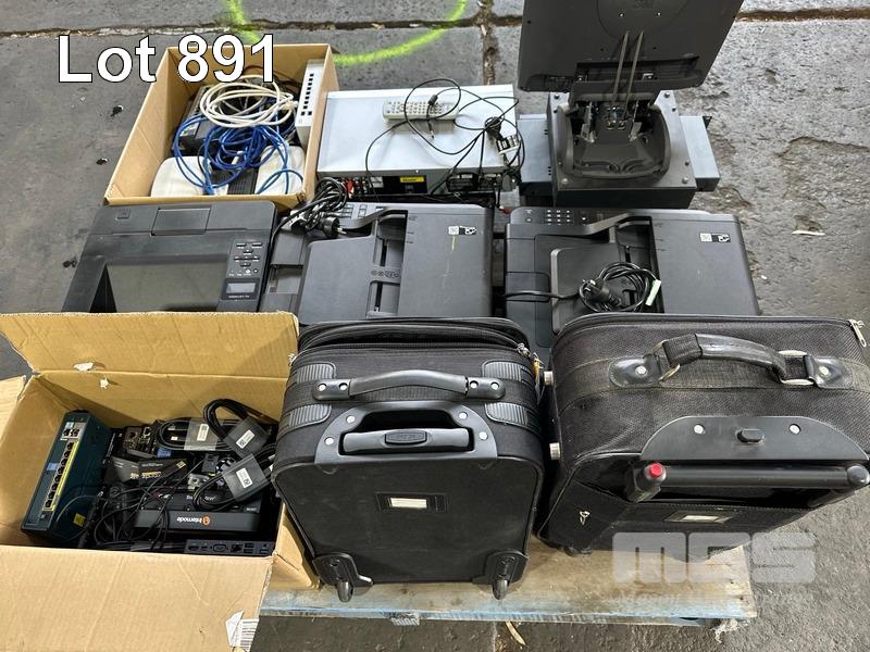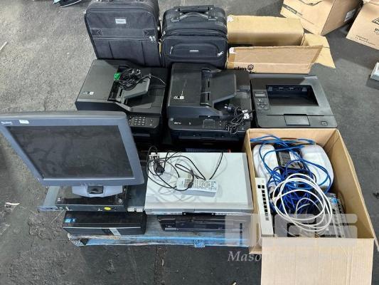 1 x PALLET LOT ASST PRINTERS (NO TONER), CABIN SUITCASES, NETWORKING, DVD/VCR COMBO, HP COMPUTER, ETC