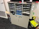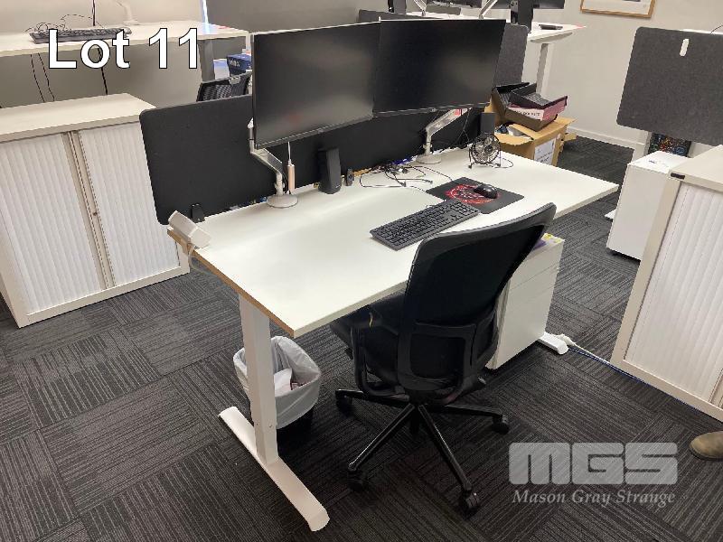 ELECTRIC RISE & FALL DESK, 1800 x 750mm, 2 x DELL 25" MOUNTED MONITORS, 2 x CREATIVE MOUNTED SPEAKERS, TAMBOUR STORAGE CABINET, 900 x 500 x 950mm, 3 DRAW UNDER DESK MOBILE, GAS LIFT CHAIR, WHITE BOARD, 900 x 900mm &GODFREY 3 DRAW CABINET, 900 x 500 x 1000mm (LOCKED)