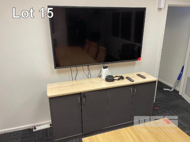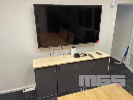 VIDEO CONFERENCE SET, NEC 70" COMMERCIAL MONITOR, WITH WALL MOUNT BRACKET, HD WEB CAMERA, YEALINK USB SPEAKER PHONE, MOD: CP900, & 4 DOOR CREDENZA, 1800 x 420 x 850mm