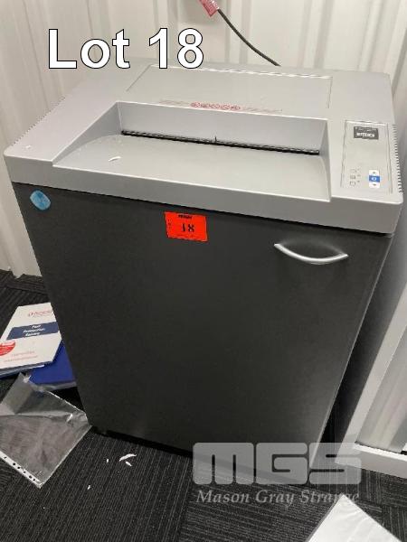 FORDIGRAPH PAPER SHREDDER, MOD: 311105, 240V 10amp, WITH TAMBOUR CABINET, 1800 x 900mm & CONTENTS, LARGE QTY OFFICE STATIONERY