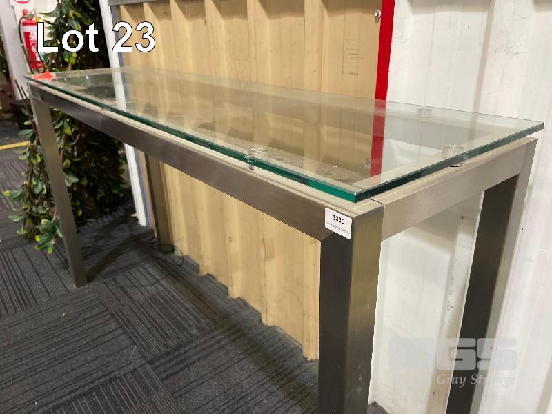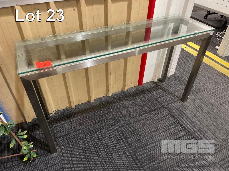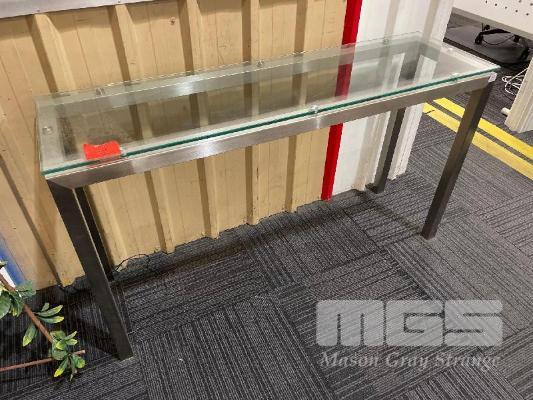 GLASS TOP HALLWAY TABLE, STEEL FRAME, 1300 x 370mm