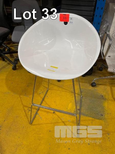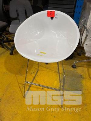 5 x BAR STOOLS, WHITE TUB SEATS, CHROME FRAME