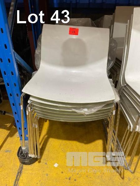 12 x STACKABLE CHAIRS WHITE/GREEN, CHROME FRAME, 4 x STACKABLE CHAIRS, WHITE/RED, CHROME FRAME