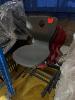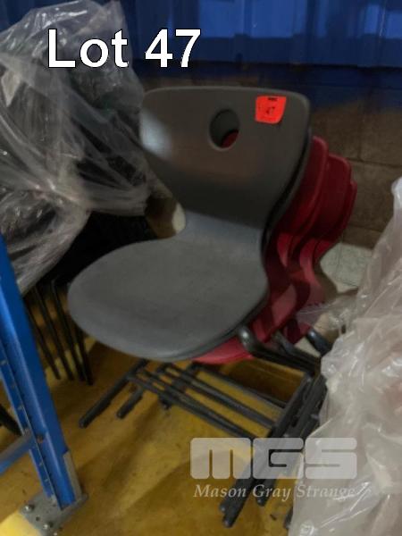 4 x STACKABLE CHAIRS, RED, BLACK STEEL FRAME, 2 x STACKABLE CHAIRS, GREY, BLACK STEEL FRAME