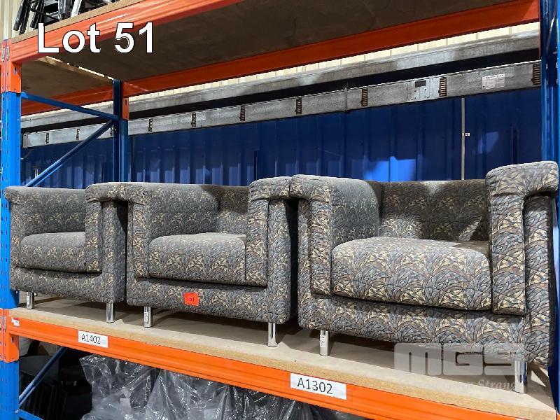 5 x TUB CHAIRS, TEXTURED CLOTH, CHROME FEET