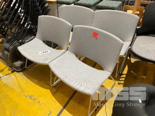 4 x WIDE SEAT VISITORS CHAIRS, LIGHT GREY CLOTH, WHITE STEEL FRAME