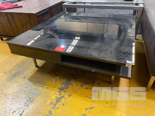 TIMBER LAMINATE COFFEE TABLE, GLOSS BLACK, 950 x 950 x 30mm