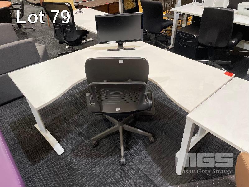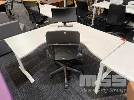 CORNER DESK WHITE TIMBER LAMINATE 1500 x 1500mm, GAS LIFT CHAIR, SAMSUNG 22" MONITOR