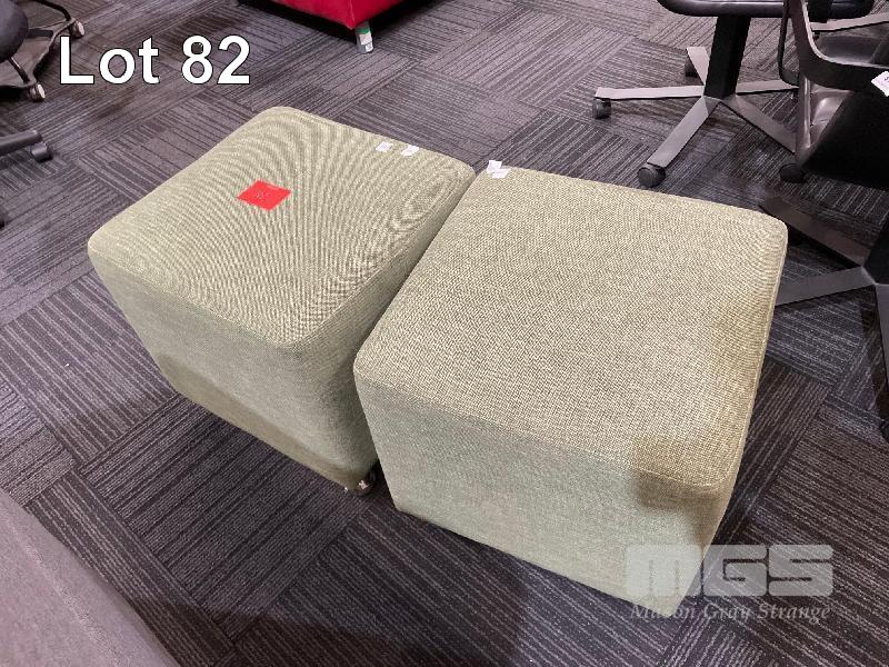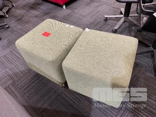 PAIR LIGHT GREEN OTTOMANS, 460 x 460 x 460mm
