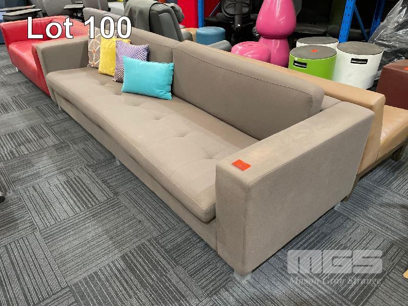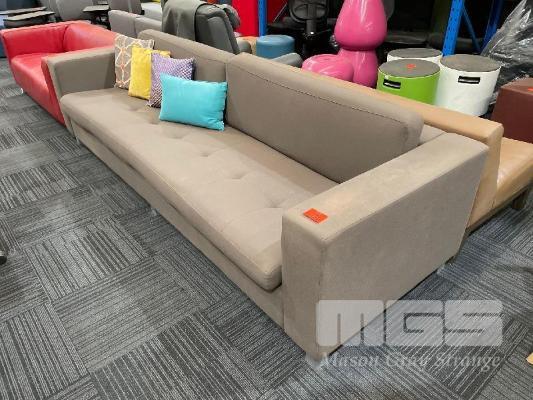 4 SEATER COUCH, LIGHT BROWN FABRIC, STEEL FEET, 2900mm (L)