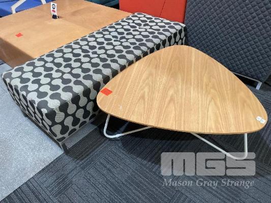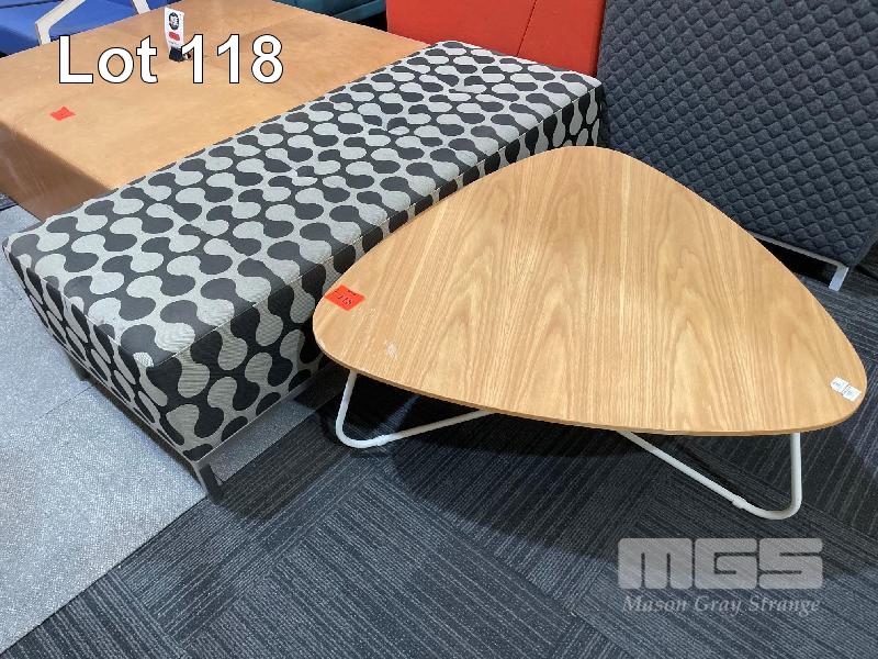CLOTH OTTOMAN, BLACK/GREY, 1500x 600 x 400mm WITH 3 SIDED TIMBER COFFEE TABLE, WHITE STEEL FRAME, 950mm