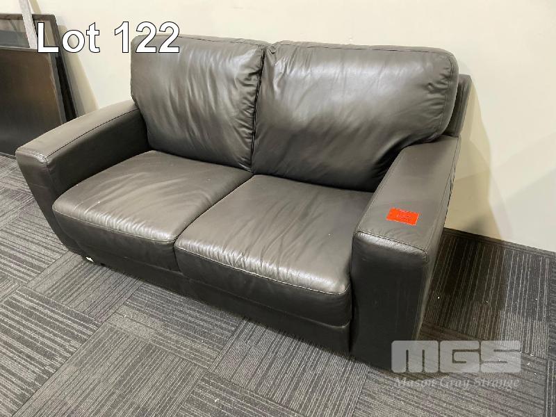 2 SEATER BLACK LEATHER SOFA, 1550mm (L)