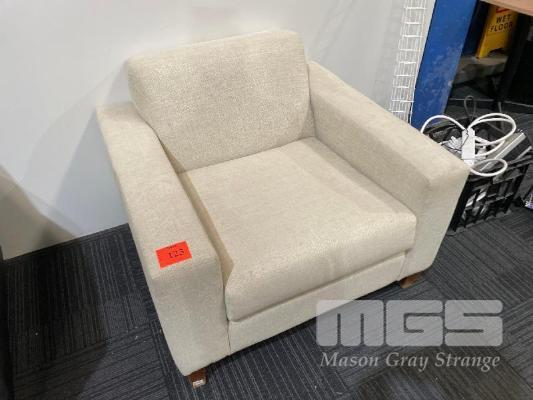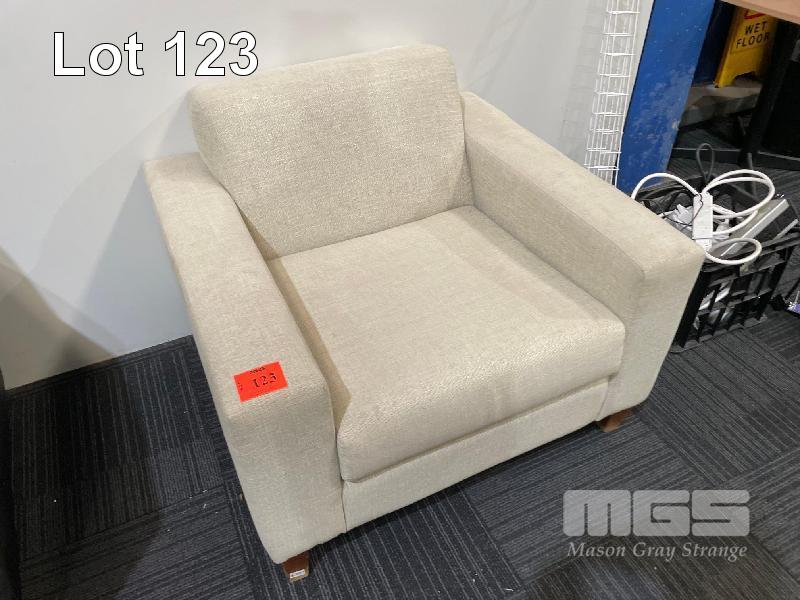 3 x SEAT SOFA CHAIR, OFF WHITE FABRIC