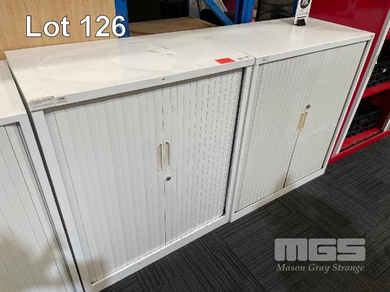 PAIR WHITE STEEL TABMOUR CABINETS, 1000 x 850 x 500mm