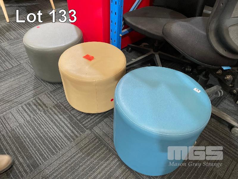 3 x ASSORTED COLOUR & SIDE LEATHER OTTOMANS