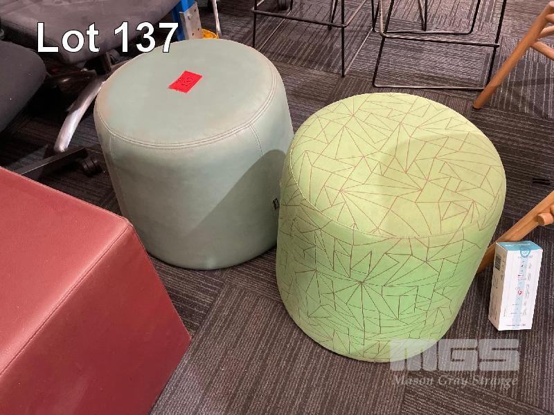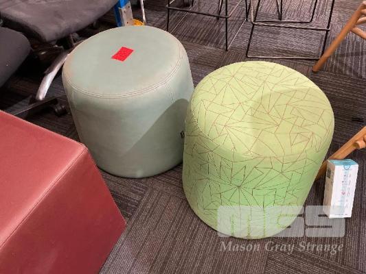 2 x GREEN OTTOMANS, 1 - CLOTH, 1 - LEATHER 450mm (H)