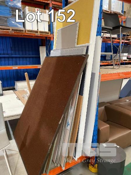 LARGE QTY ASSORTED WHITE BOARDS, PIN BOARDS & FREESTANDING CHALK BOARD