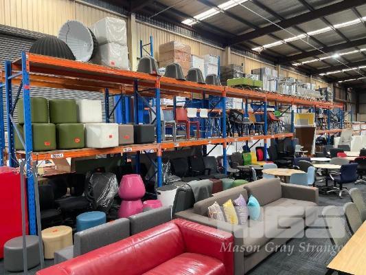 10 x BAYS PALLET RACKING 30 x CROSS BEAMS, 2650mm, 12 x LIGHT WEIGHT CROSS BEAMS, 2800mm 9 x UPRIGHTS, 3050mm, 2 x UPRIGHTS, 1800mm 13 x PARTICLE BOARD SHELVES, 30mm