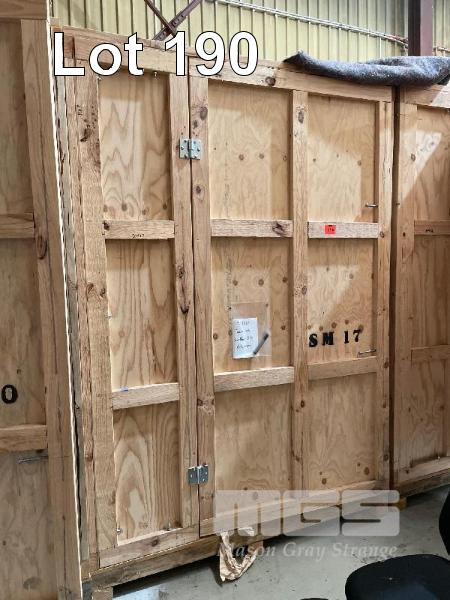 LARGE PINE TIMBER SHIPPING/STORAGE CRATE, 1800 x 2400 x 2630mm (H), SINGLE DOOR, BOLTED FRAME, FORK POCKETS