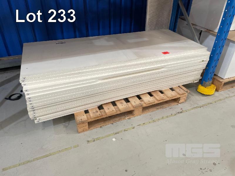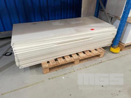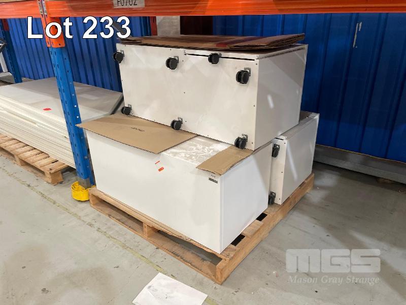 16 x TIMBER LAMINATE DESK TOPS, 1800 x 800mm, 6 x WHITE STEEL UNDER DESK MOBILES
