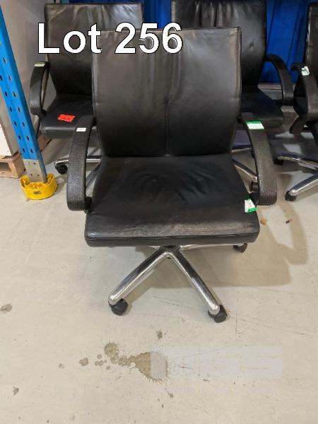 5 x BLACK LEATHER GAS LIFT OFFICE CHAIRS, (MATCHING SET)
