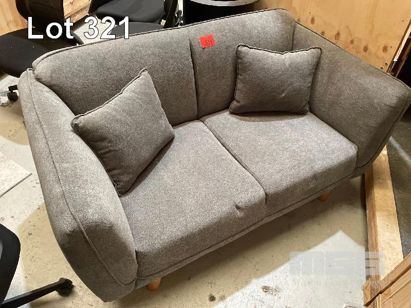 GREY CLOTH 2 SEATER LOUNGE, WITH BLACK STEEL PLANTER POT, 730mm (H)