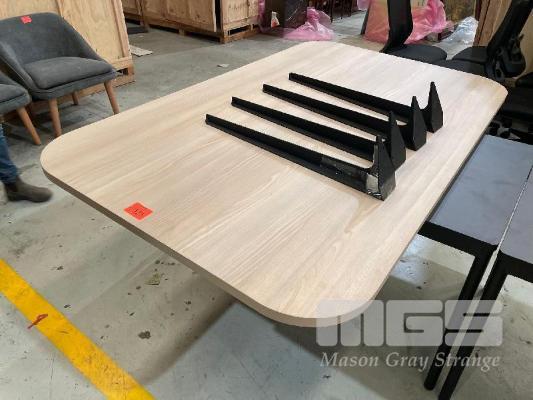 LARGE TABLE, LIGHT TIMBER LAMINATE, BLACK STEEL LEGS NOT ASSEMBLED 2000 x 1200mm