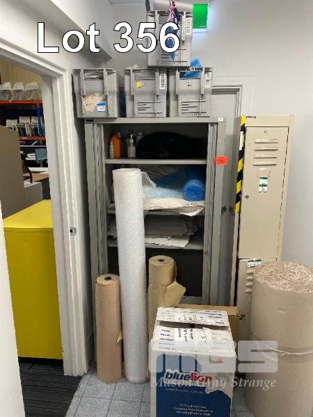 STEEL TAMBOUR CABINET & CONTENTS, 1800 x 900 x 500mm, BUBBLE WRAP, PAPER PACKAGING ETC. + 2 DOOR STEEL LOCKER