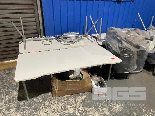 13 x ASSORTED GAS LIFT CHAIRS, 5 x WHITE TIMBER LAMINATE DESK, 1800 x 900mm