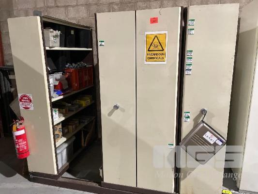 4 BAY COMPACTUS, 430 x 1260 x 2000mm (H) & CONTENTS, CASTOR WHEELS, SILICONES, PAINT, SANDPAPER, HARDWARE ETC.