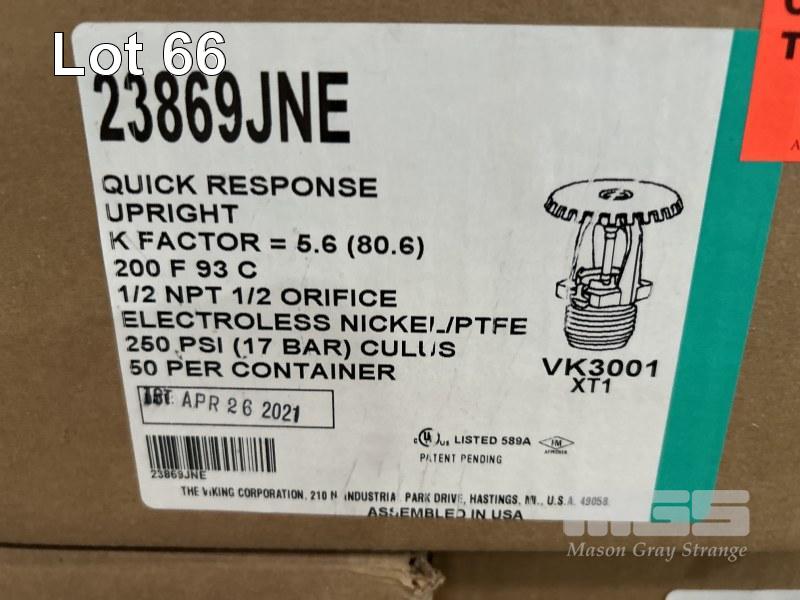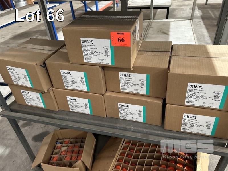 FIRE SPRINKLER HEADS, VIKING TYPE: 23869JNE 9 x BOXES, 50 UNITS/BOX WITH FIRE SYSTEM MULTI SPRAY NOZZLES, FIRE KILL APS, TYPE: K6 2 xBOXES, 25/BOX, PIPE CLAMPS, STAINLESS STEEL & ASSORTED FIRE SYSTEM COMPONENTS 3 x SHELVES