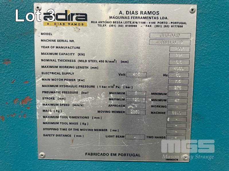 ADIRA GUILLOTINE, MOD: GHS-0640, SERIAL: 4599/11564D, DOM: 2004, 6.5mm x 4080mm CAP, FOOT CONTROL, POWERED BACK GAUGE, WITH KEYS, 415V 3 PHASE (DISCONNECTED) NOTE: MACHINE WEIGHT: 8.8 TONNE