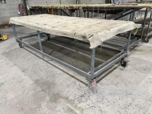 STEEL FRAME LAYOUT BENCH, MOBILE, SCRATCH PROOF CARPET TOP, LOCKING CASTORS, 2850 x 1150 x 850mm