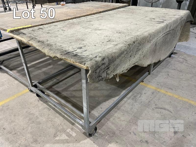 STEEL FRAME LAYOUT BENCH, MOBILE, SCRATCH PROOF CARPET TOP, LOCKING CASTORS, 2800 x 1250 x 910mm (H)