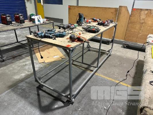 MOBILE WORK BENCH, STEEL, CHIPBOARD 2400 x 900 x 1060mm