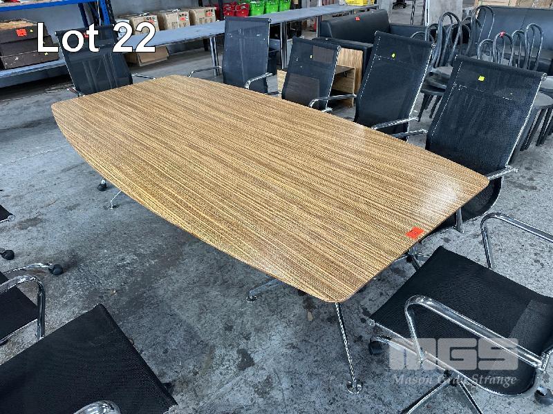 LARGE BOARDROOM TABLE, TIMBER LAMINATE TOP, STEEL FRAME, 2400 x 1200mm