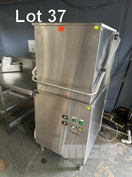 COMMERCIAL PASS THROUGH DISHWASHER, ADLER MOD: ECO 1000 415V HARDWIRED WITH STAINLESS STEEL IN FEED BENCH 1180 x 750mm