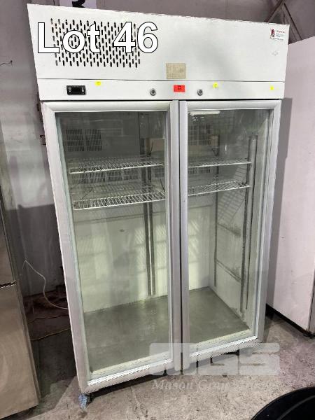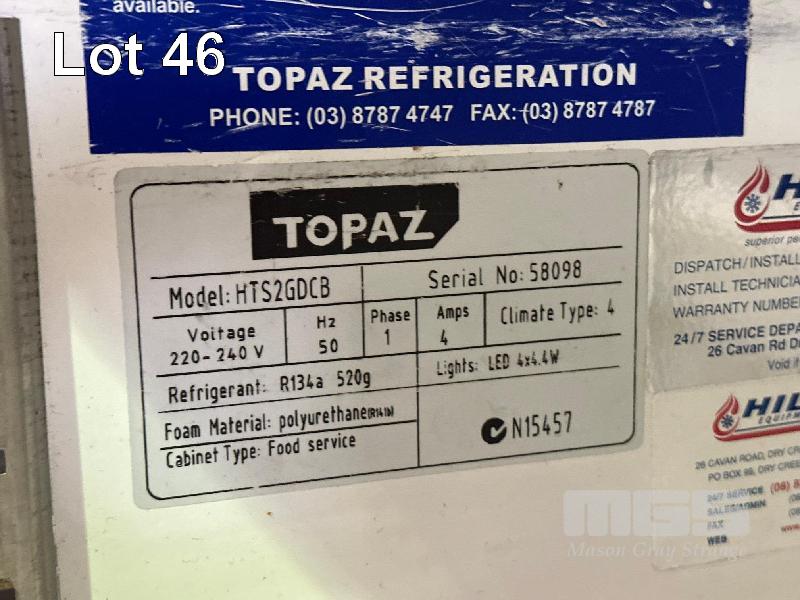 2 DOOR UPRIGHT DISPLAY FRIDGE, TOPAZ MOD: HTS2GDCB LED LIGHTS, DRO 240V 10AMP PLUG
