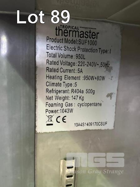 4 DOOR UPRIGHT CHEFS FREEZER, THERMASTER MOD: SUF1000 CAPACITY: 950L 240V 10AMP PLUG