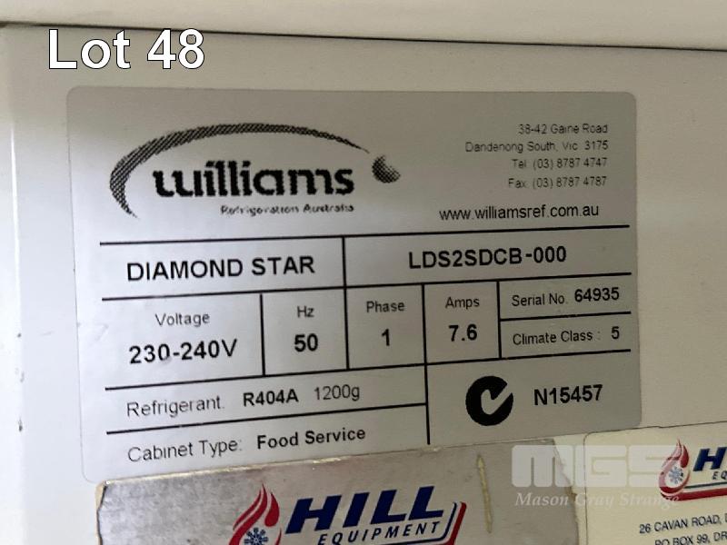 2 DOOR UPRIGHT CHEFS FREEZER, WILLIAMS MOD: LDS2SDCB-000 240V 10AMP PLUG