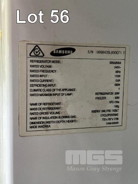 FRIDGE FREEZER, SAMSUNG MOD: SR502NXA CAPACITY: 502L 240V 10AMP PLUG