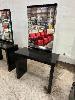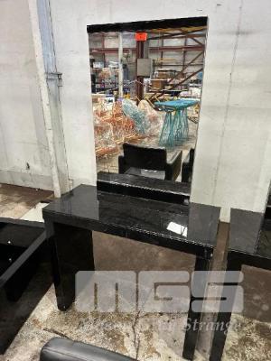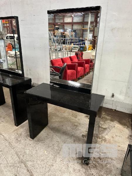2 x SALON MIRRORED VANITY UNITS, GLASS TOP, BLACK TIMBER LAMINATE FRAME 1000 x 250 x 1000mm (H)