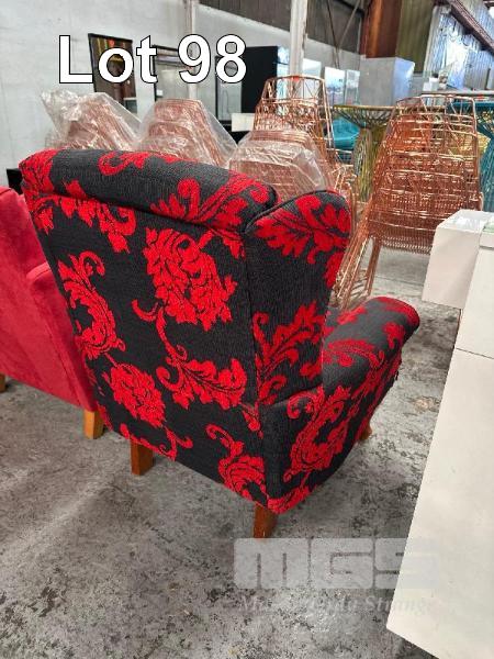 FLORAL PATTERED ARM CHAIR, BLACK/ RED FABRIC